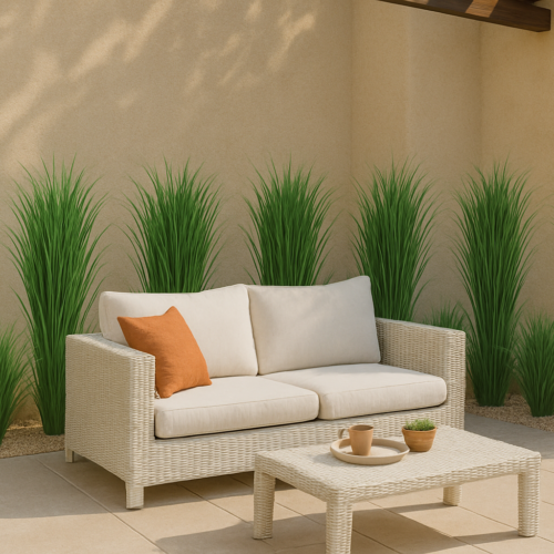 Enhance your outdoor space with the Artificial Palm Grass Deluxe Green 140cm. This realistic, UV-protected plant is designed for durability and low maintenance, making it ideal for patios, gardens, balconies, or any outdoor area. Standing at 140cm tall, it is perfect for use as a floor plant or for creating privacy by planting multiple units side by side. When dressed out the width of this plant is 70cm.