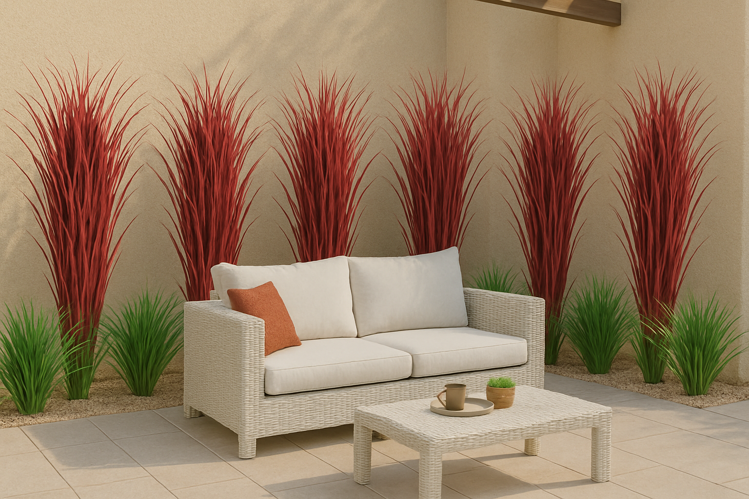 Crafted with high-quality materials, this artificial palm grass features a rich burgundy red color that stands out beautifully against its green foliage, creating a unique and eye-catching display. The UV protection ensures it maintains its vibrant color and quality even in direct sunlight, making it a durable, long-lasting addition to your outdoor decor.