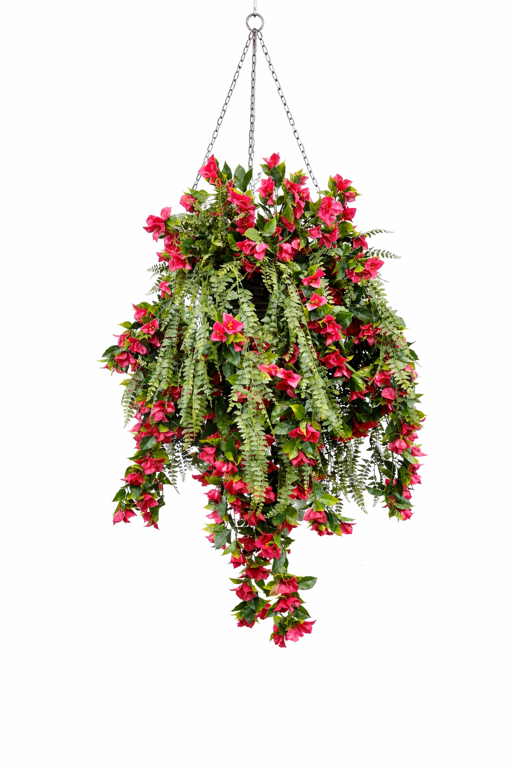 Overflowing with vibrant, lifelike Bougainvillea blooms and layered with rich green trailing foliage, this arrangement captures the beauty of a perfectly maintained floral display. The generous cascading silhouette creates depth, movement, and visual drama, instantly transforming ceilings, pergolas, reception areas, and retail environments.