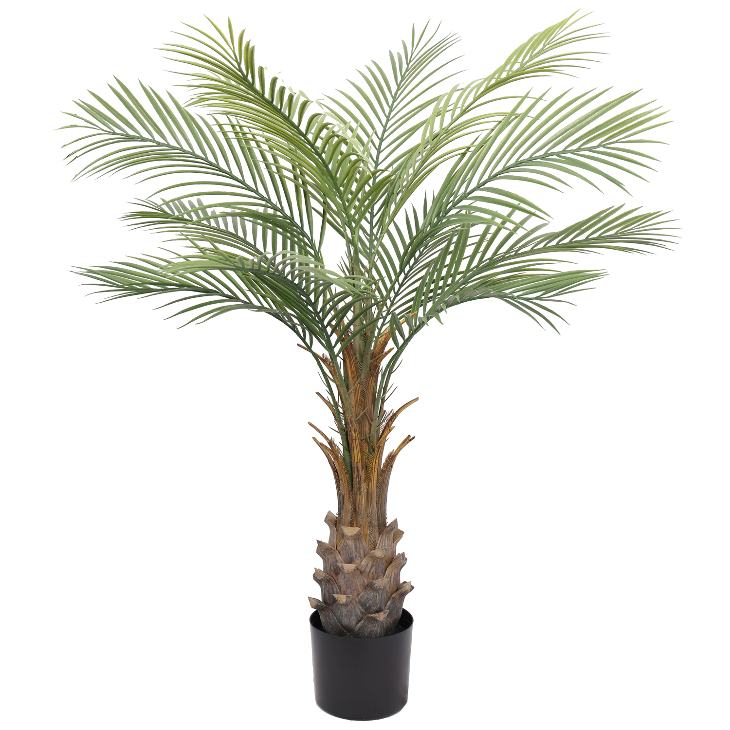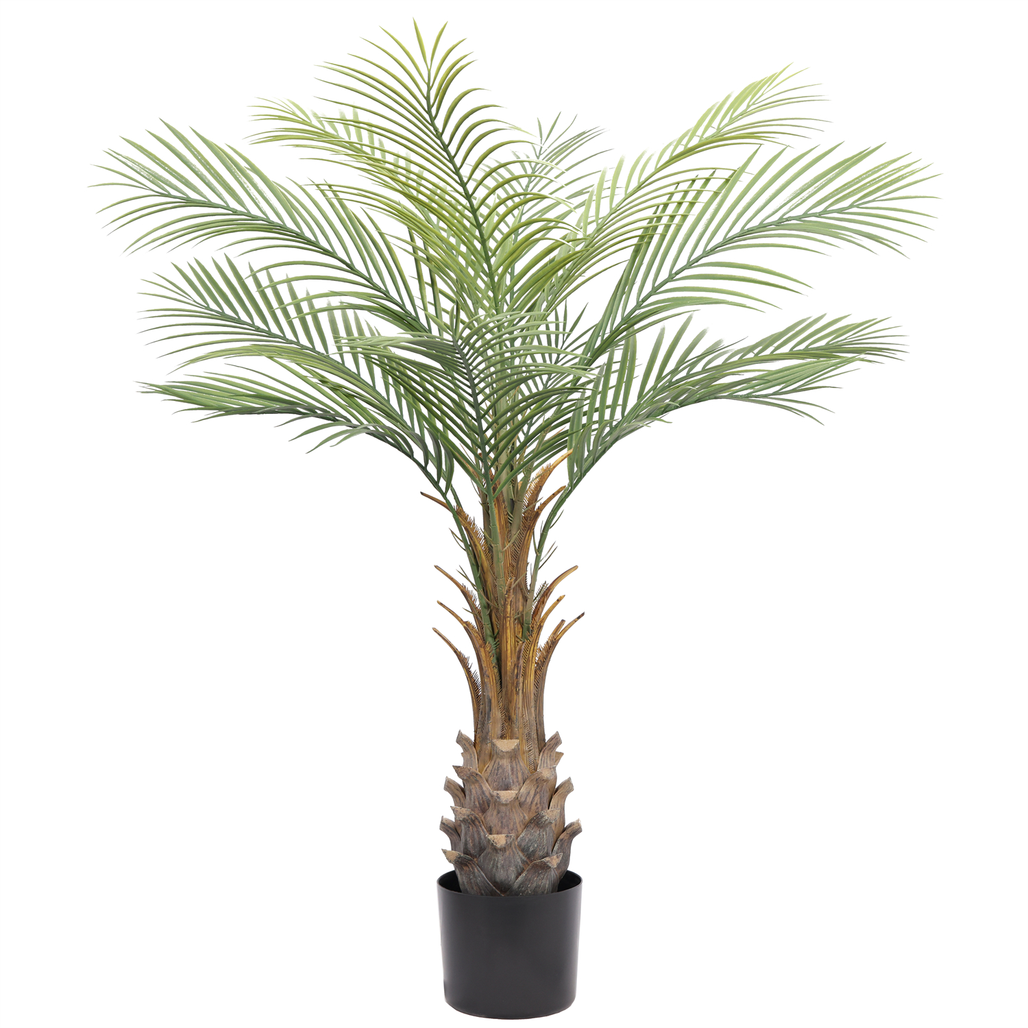 This artificial Phoenix Palm stands at 123cm tall from the bottom of the pot to the tip of the leaves. It has long, arching fronds and a textured trunk that gives a clean, realistic finish. The shape is full and well balanced, making it a reliable choice for adding height and greenery to both indoor and outdoor spaces.