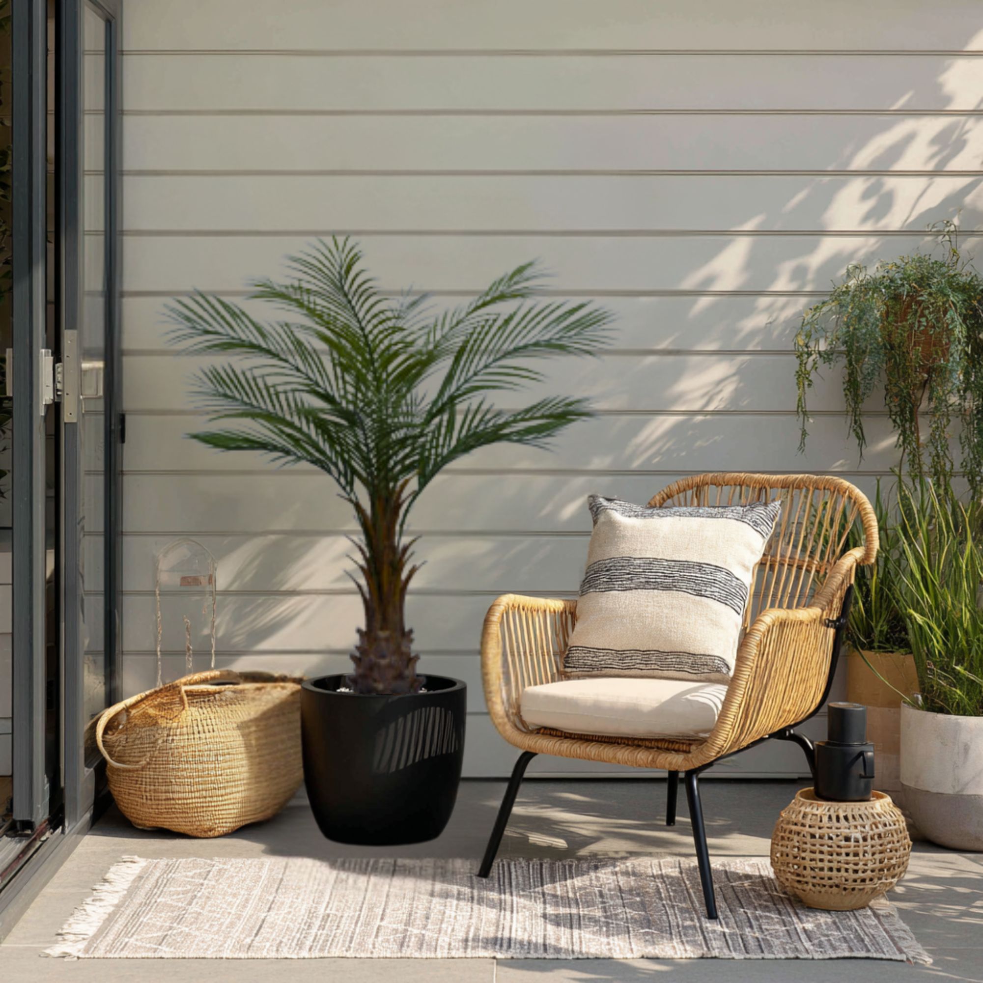 This palm is easy to position in larger pots or planters to create an instant feature. It works well in hospitality settings, offices, reception areas and holiday homes where a tidy, low maintenance finish is important. It also helps soften corners and add structure to wider planting displays.