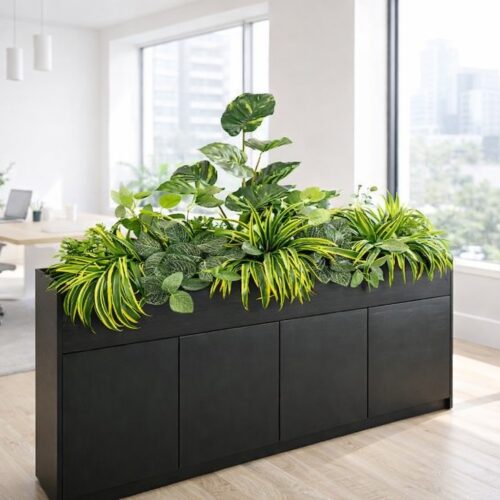 Set in a rustic wooden black rectangular box, this window box offers a polished, timeless look that complements both traditional and modern spaces. Designed for long-lasting beauty, it requires no watering, sunlight, or maintenance, making it ideal for windows, patios, balconies, entryways, or indoor décor where year-round greenery and colour are desired.