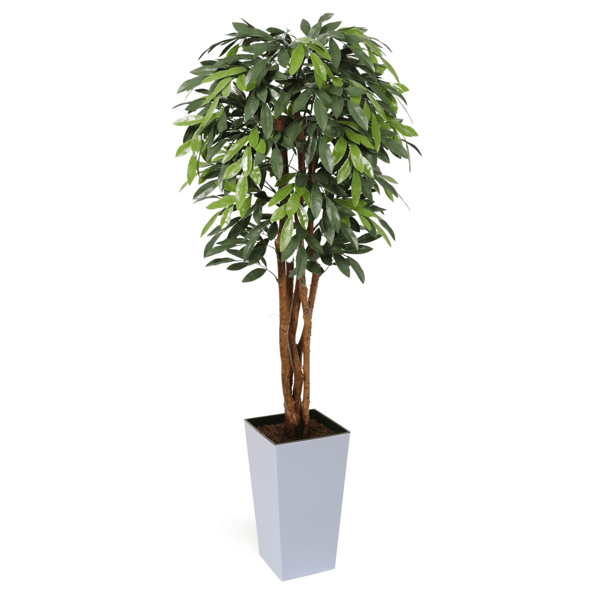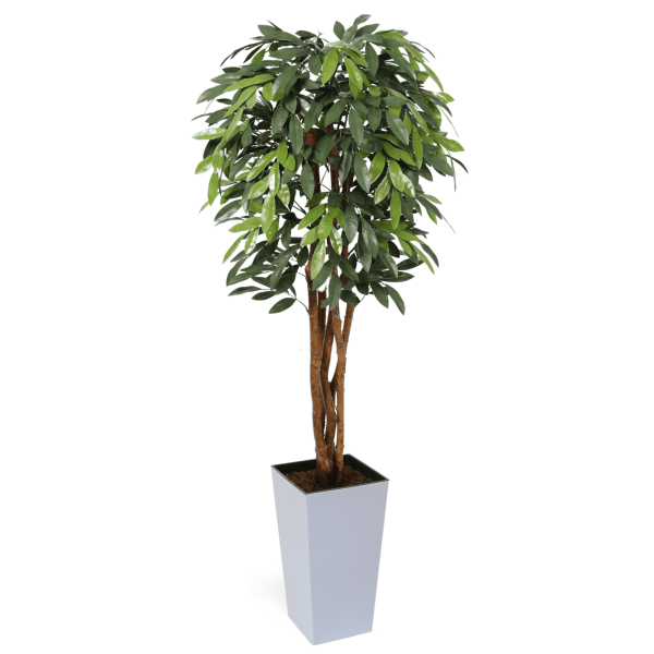 The elegant artificial Mango tree omnipresent in all of its grandeur, stretches 145cm from the bottom of the functional starter planter to the top leaf. Meticulous attention to detail is reflected in the exquisite nuances of the tree, layered with the top-quality UV plastic foliage.